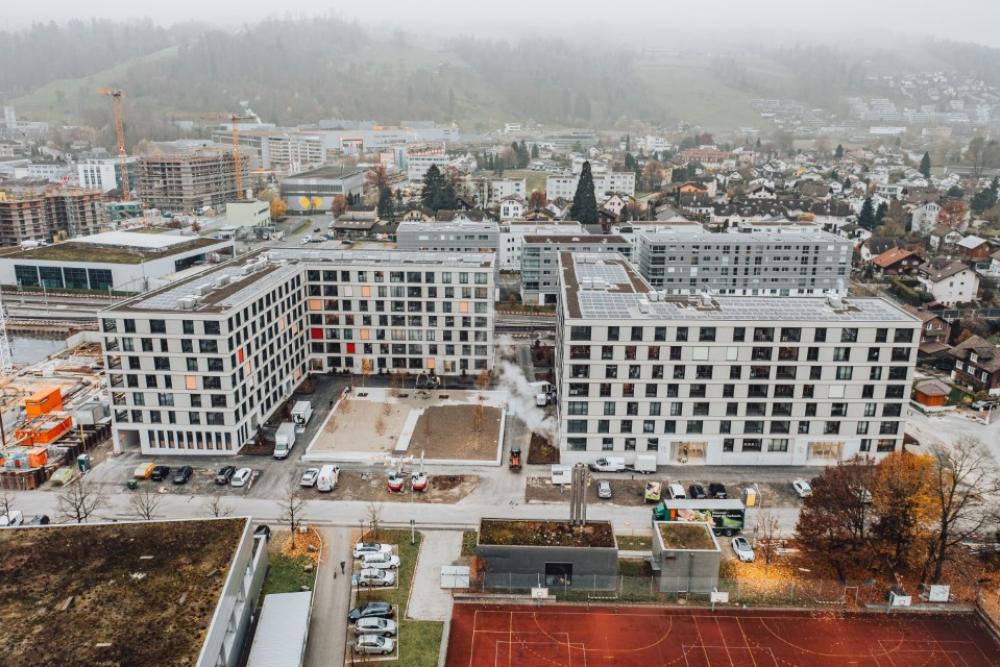 Das Gebiet Horw Mitte (HOMI) zählt zu den grossen Entwicklungsgebieten in Luzern Süd. Auf dem Baufeld A sind zwei L-förmige Wohnbauten mit je einem Untergeschoss, einem Hochparterre und sechs Obergeschossen entstanden. Die gesamte Bebauung wurde mittels Vollverdränger-Bohrpfählen tiefenfundiert. Das Hochparterre und die Obergeschosse wurden in Hybridbauweise erstellt, wobei die Tragstruktur in Massivbauweise und die Fassaden in Holzbauweise ausgeführt wurden. In den zwei Gebäuden in Minergie-Standard wurden insgesamt 144 2.5- bis 5.5-Zimmer-Wohnungen mit unterschiedlichsten Grundrisstypen geschaffen. Die Leistung unsererseits umfasste die Produktion und Montage der Aussenwandelemente.